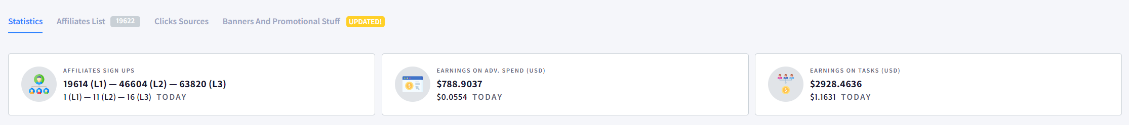 Invite friends, acquaintances and everyone who is interested in online earnings using your referral link and acquire passive income: 15% of your partners' advertising costs and 25% of their earnings!